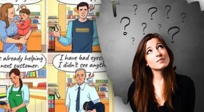 Allt du behöver göra är att titta på bilden nedan och identifiera vem av personerna i butiken som stal någons plånbok. Tre av personerna på bilden talar sanning, men en av dem ljuger.