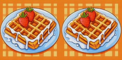 Så, är du redo för nästa utmaning? Ta en titt på två bilder av en våffla med jordgubbskräm. Vid första anblicken ser båda bilderna ut att vara likadana. Men det finns tre skillnader, och du måste hitta dem på 29 sekunder.